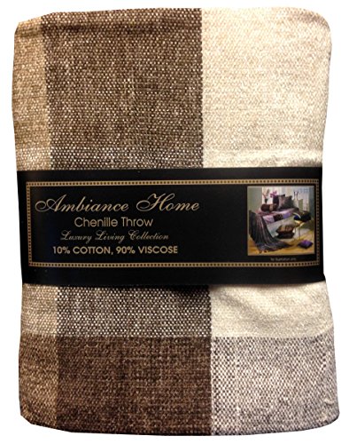 Chenille Checked Decorative Throws for sale eBay ~ 150cm x 190cm approx chenille check natural dry clean only 10 cotton 90 viscose 60 x 75 approx set contains has a woven textured feel simple and elegant check design with fringed edge