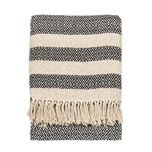 Sass Belle Scandi Boho Tassel Cotton Blanket Throw from ~ This tassel blanket throw is a perfect fit for a couch chair or bed It is made from a 100 cotton and is infused with natural colourways of black browns and creams It is made from a 100 cotton and is infused with natural colourways of black browns and creams