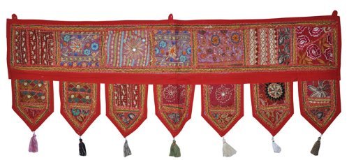Mango Gifts Ethnic Indian Home Decorative Patchwork ~ Mango Gifts Ethnic Indian Home Decorative Patchwork Embroidery Work Door Hanging Throw Tapestry 39 X 13 Inches Red