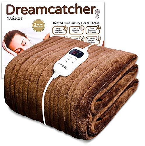 Dreamcatcher Luxury Fleece Heated Washable Electric ~ Dreamcatcher Luxury Fleece Heated Washable Electric Blanket Throw Cream Chocolate Brown Extra Large 200 x 130cm Overblanket Timer 9 Control Settings … LUXURY Indulge in the rich softness of a Dreamcatcher Heated Throw The beautiful ultrasoft micro plush fabric is smooth to the touch Extra Large Size 200 x 130cm FAST Quick heat up