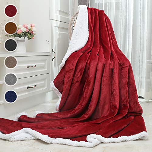 Catalonia Mink Fleece Blanket Reversible Sherpa Throw ~ Catalonia Mink Fleece Blanket Reversible Sherpa Throw Large for Sofa Bed Super Soft All Season Comfort Caring Gift 127cm x 152cm 50 x 60 Wine Catalonia soft warm mink fleece Sherpa blanket comes with dual sided features with a mixture of truly elegant and soft fabrics The front side of the throw has a soft micro mink fleece and the