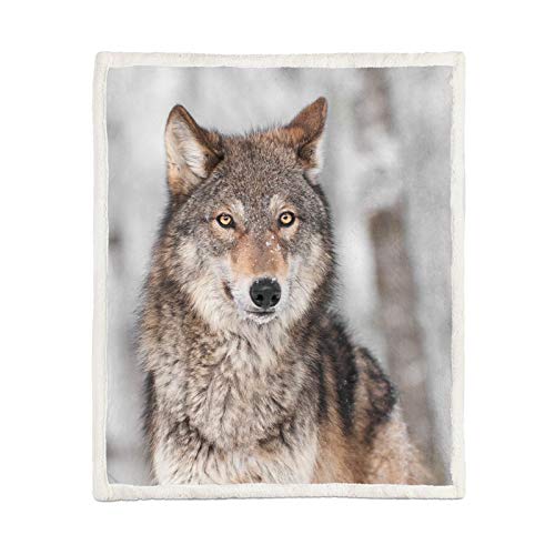 animal fleece blankets and throws ~ Ideal Textiles Luxury Wolf Print Sherpa Throw Cosy Plush Modern Wild Animal Printed Blanket Super Soft Sofa Chair Bed Throws Natural Grey 125cm x 150cm by Ideal Textiles £1595