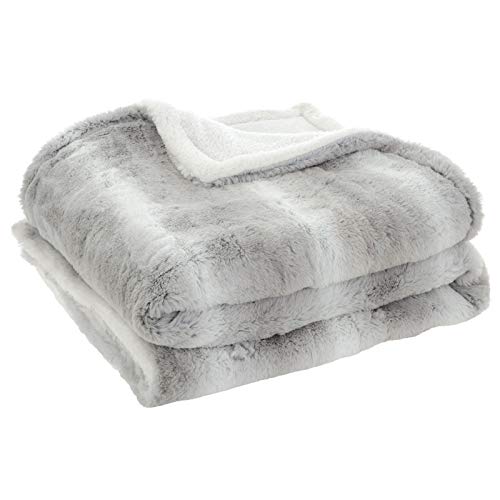 MicroPro Deluxe Double Layer Faux Fur Sherpa Fleece ~ Its double layered with a luxuriously soft faux fur front and white sherpa fleece reverse The soft grey tones will look fantastic in your home Drape this deluxe blanket across your bed chair or sofa for a stylish contemporary look