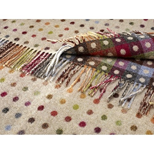 Bronte Pure Lambs Wool Sofa Throw Blanket Beige Multi Spot ~ The Bronte Pure Lambs Wool Sofa Throw Blanket Beige Multi Spot Design is a modern design and is a good way of covering a chair or sofa and it also provides an extra blanket when its needed With spots and a check pattern it will match any colour scheme and add an extra splash of colour Made from 100 lambs wool it is soft light and will last a long time
