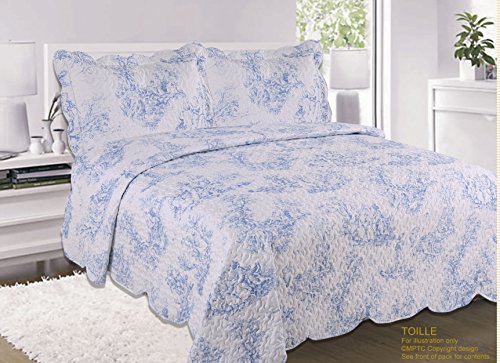 Quilted Vintage Shabby Chic Toille Bedspread Comforter ~ Bienven Quilted Vintage Shabby Chic Toile BedspreadComforter Throw Double Bed Blue 220 230cm Bluemoon Patchwork 100 Cotton Quilted Bedspread Set With Pillow Cases Bed Throw Fits Double And King Size YZ9371