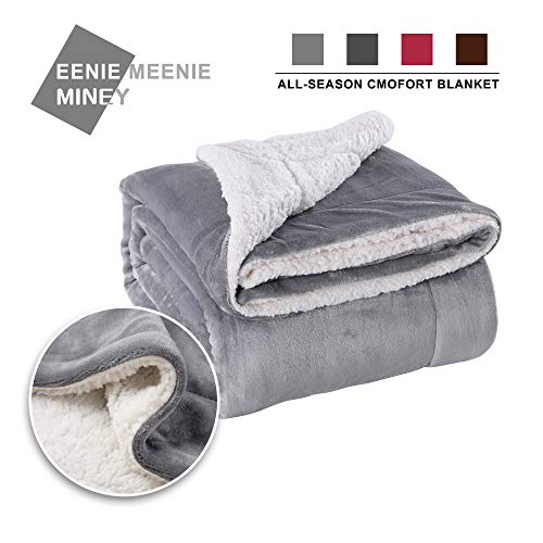 eenie meenie miney Grey Thick Blanket Sherpa Fleece Double ~ This winter blanket is made of high quality sherpa fleece with 2 cm hem the blanket keeps you warm and cozy all year its very soft micro mink fleece on one side plush white Sherpa fleece on the flip side