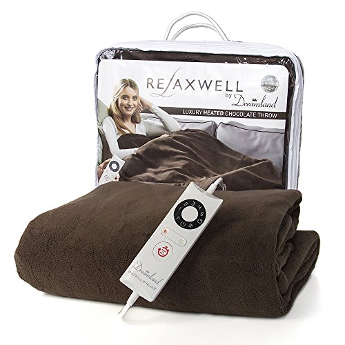 Dreamland 16333 Relaxwell Luxury Heated Chocolate Throw ~ Dreamland 16333 Relaxwell Luxury Heated Chocolate Throw Polyester Brown Single Indulge in the LUXURY of this SUPER SOFT HEATED THROW Perfect to snuggle up under on chilly days and nights keeping you warm cozy INTELLIHEAT CONTROL with FAST PREHEAT BUTTON for when youre ready to relax 6 Temperature Setti