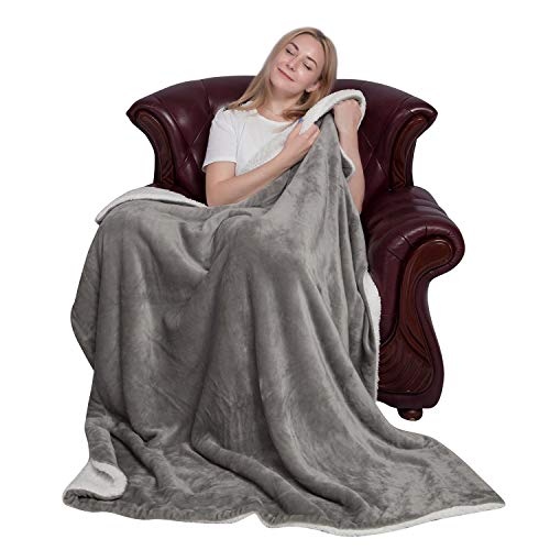 Results softan Sherpa Flannel Fleece Blankets Warm Soft Double Layer Reversible Plush Luxury Blanket, Grey T